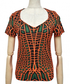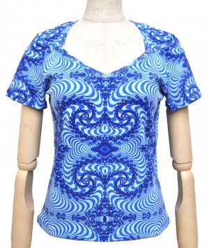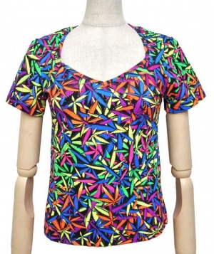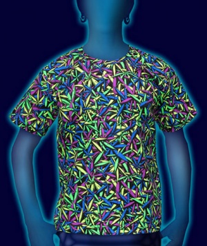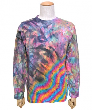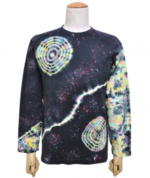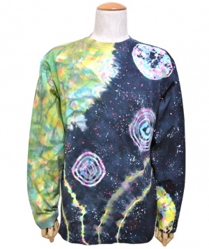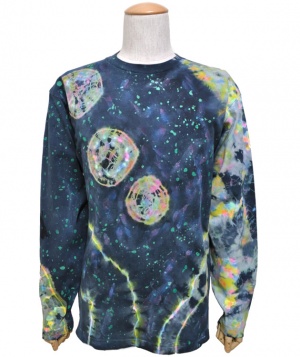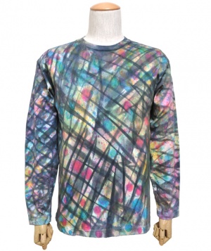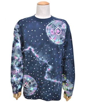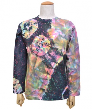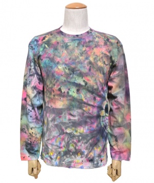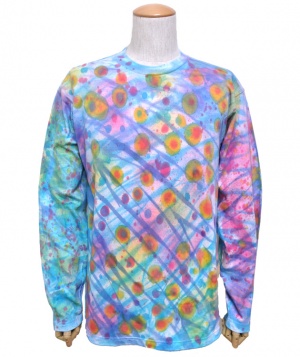 デザインは全てデザイナーがエアーブラシ、ハンドペイント、染めを用いて創りだしており、似たデザインでも同じ物は1つとしてありません。この独特の色合いや風合いはタイダイとは違った魅力のある一品です。